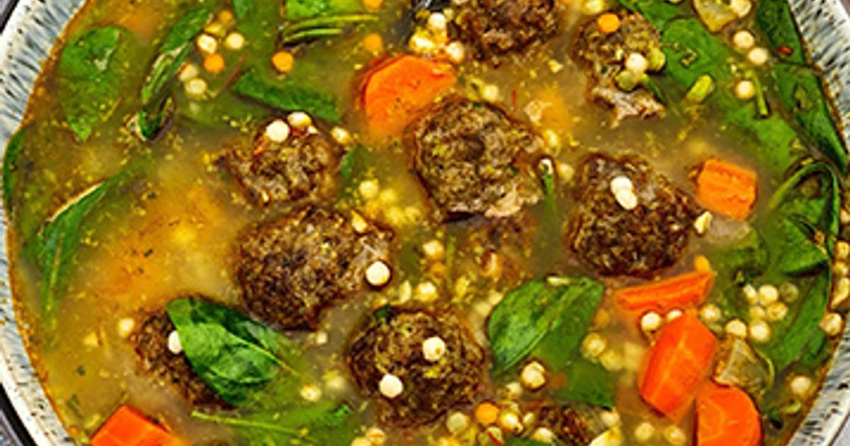 Meatball Couscous Soup / Meatball Vegetable Couscous Soup : Let stand until liquid has been absorbed and couscous is tender, about 5 minutes.. Pour chicken broth into chicken mixture, add arugula, and stir contents of couscous seasoning packet into mixture; Step 2 season to taste, then add the meatballs and spinach. Stir couscous into mixture, cover pan, and remove from heat. Coarse bulgur is used to make pottages, while the medium and fine grains are used for breakfast cereals, salads such as kısır, pilavs, breads, and in dessert puddings such as kheer. Add the cooked couscous and arugula to the yogurt mixture, tossing to combine.